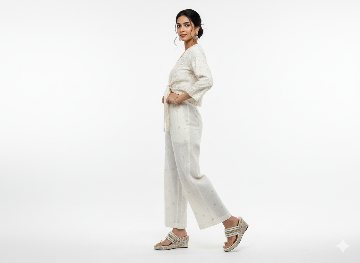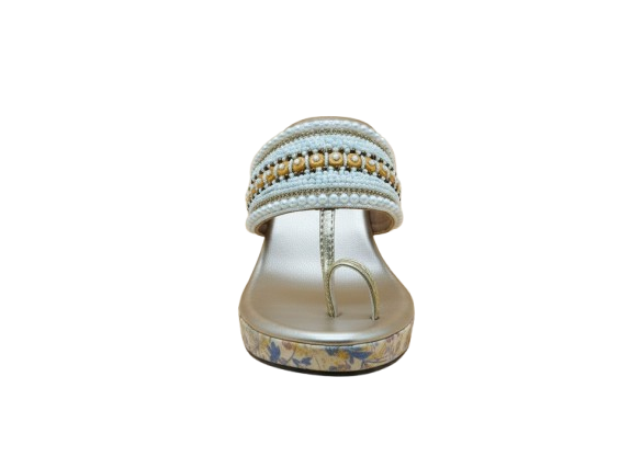 The cushioned metallic footbed and sturdy wedge heel provide all-day support, making it a perfect choice for weddings, festive occasions, parties, and ethnic wear styling. Its versatile gold and ivory tones complement sarees, suits, lehengas, and Indo-western outfits effortlessly.